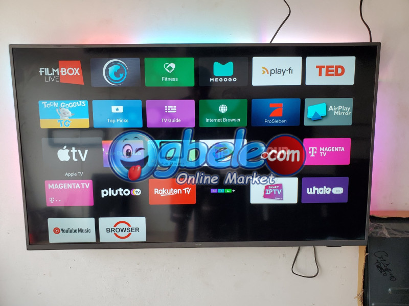 Philips android TV 50 inches 4k display with free Netflix account and YouTube with many others apps with Google play store and Bluetooth. Direct UK used TV working perfectly. If you are around lagos I do payment on delivery
