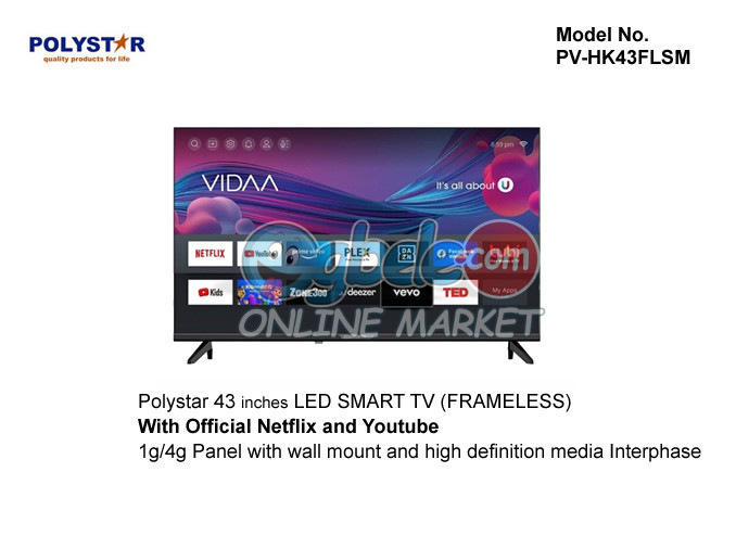 Polystar 43" LED Smart TV Frameless