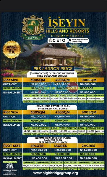 - β Dual-purpose plots (Residential & Resort) π β Free Deed & Survey π§Ύ β Zero interest on all payment plans πΈ β Flexible installment options (Daily, Weekly, Monthly) π β One-off payment discount (5%) π β Fast-rising investment hub in Oyo State π