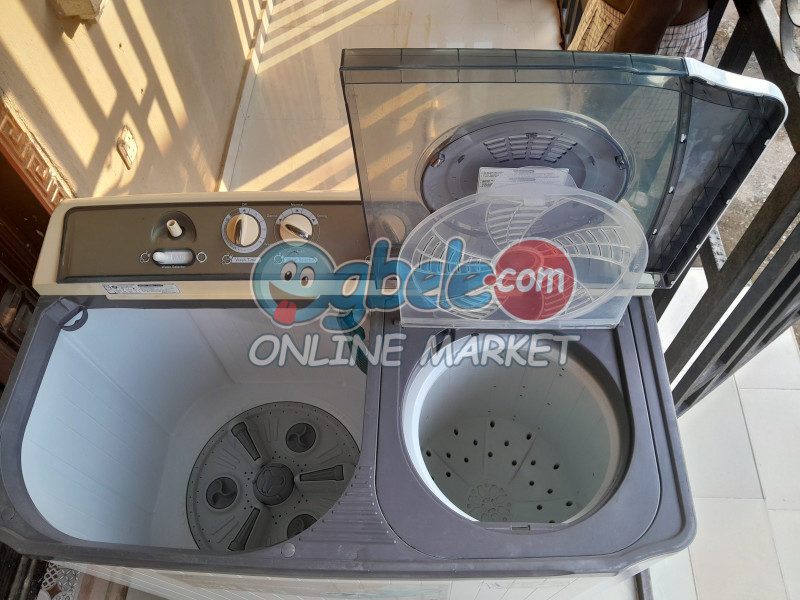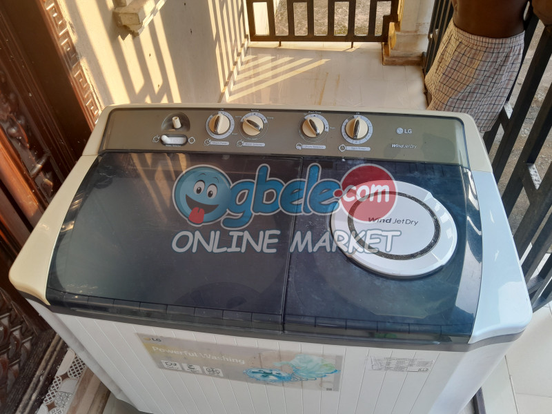 - LG twin tub powerful washing machine Condition: Neatly used Weighs :35.5kg Wash capacity : 14kg Spin: 10k Wash time : 15mins Spin time: 10mins Dimension: 964 x 540 x 1043mm(W x D x H) Available for pick up Price :200k