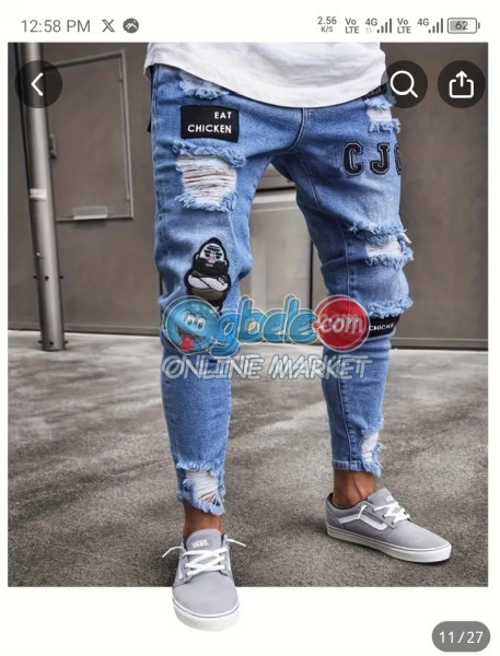 Men's Slim-Fit Ripped Jeans with Badge