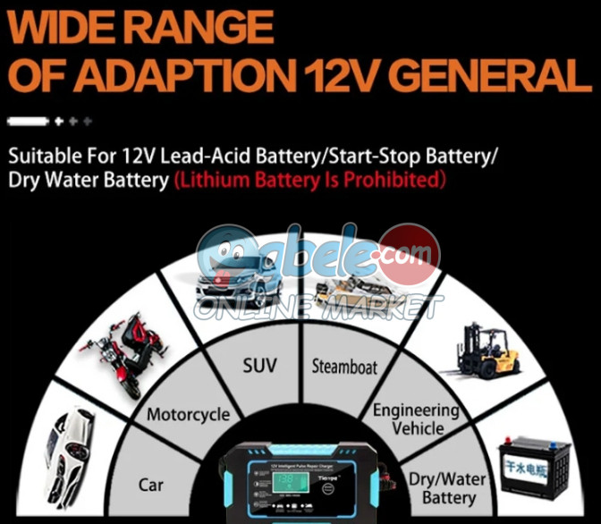 - 12volt & 24volt (NEPA/GEN) Connected Robust Intelligent Fast Battery Charger. For All kind of Batteries. It charges up to 1000Ah 12V and 24V wet and dry cell batteries.