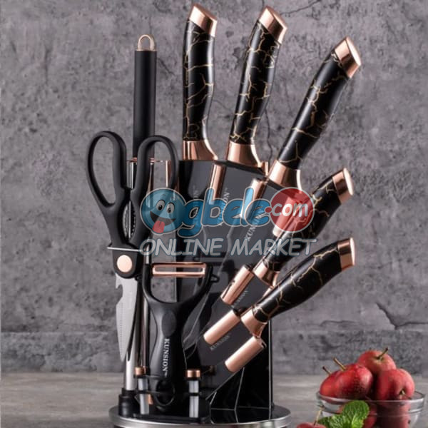 Product Size: Cleaver Knife, Chef Knife, Bread Knife, Utility Knife, Fruit Knife, Sharpener, Kitchen Scissors, Peeler, Acrylic Stand